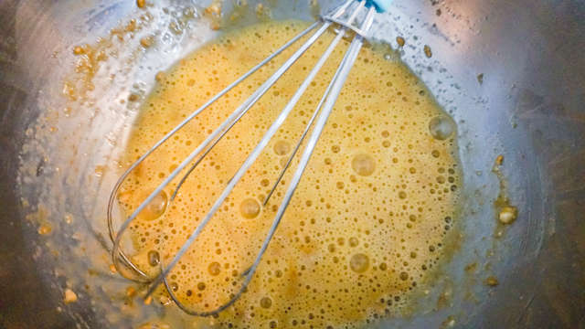 Twee handjes 'Parmesan' kloppen met de 2 eieren.