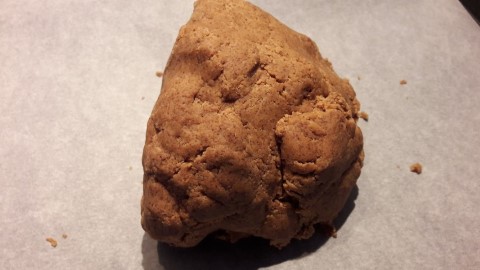 Kneed nu met je handen alles goed door elkaar. Dan krijg je een korrelig deeg en dat wordt vanzelf een deegbal maar heb wel even geduld.