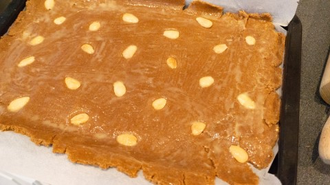 Zet de speculaasbrokken voor ongeveer 30 minuten in de voorverwarmde oven.