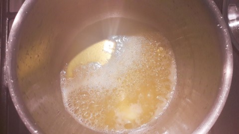 Smelt de boter in een steelpan. En roer hier de koekjes doorheen.