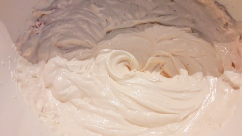 Scheid de eieren en voeg de 2 eiwitten toe. En mix alles weer goed door elkaar met de mixer.