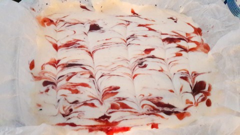 Besprenkel met de tova of met de jam en trek er met een cocktailprikker een mooi patroon in.