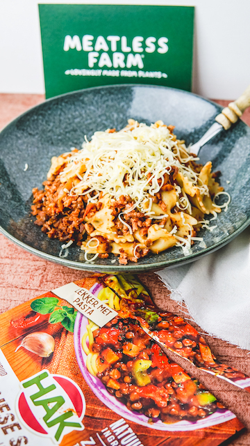 Eerder deelde ik al een recept met de plantbased burgers van de Meatless farm. Deze keer deel ik het recept van deze strikjespasta met het vegan gehakt en de bologneseschotel van Hak. Wat een heerlijke combinatie deze twee. Helaas gaat de bologneseschotel van Hak binnenkort wel uit het assortiment. Maar hij is nog verkrijgbaar. Ik hou van deze zakken van Hak, het is een gezonde basis en bevat geen toegevoegde suikers. En ze zijn lactosevrij, ideaal als je een keer voor makkelijk wilt gaan en toch iets gezonds op tafel wilt zetten. Deze soort gaat binnenkort uit het assortiment maar je kunt ook de Italiaanse groenteschotel gebruiken.