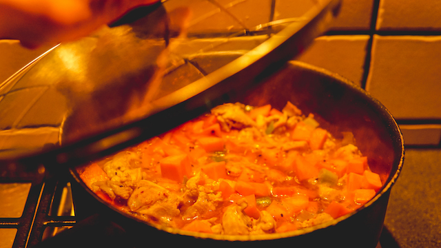 Laat 25-30 minuten met de deksel op de pan pruttelen.