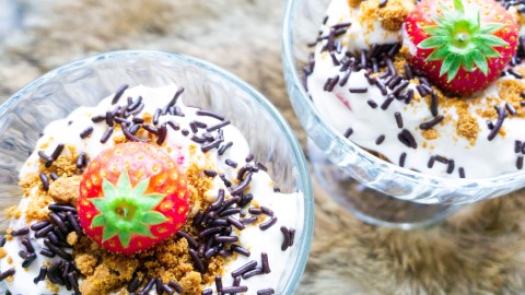 Toetje met slagroom en aardbeien lactosevrij