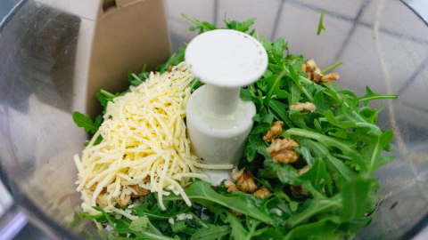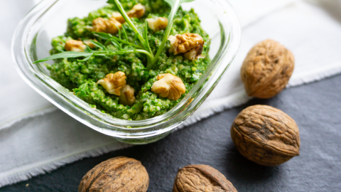 En nu heb je je eigen gemaakte walnotenpesto met rucola.